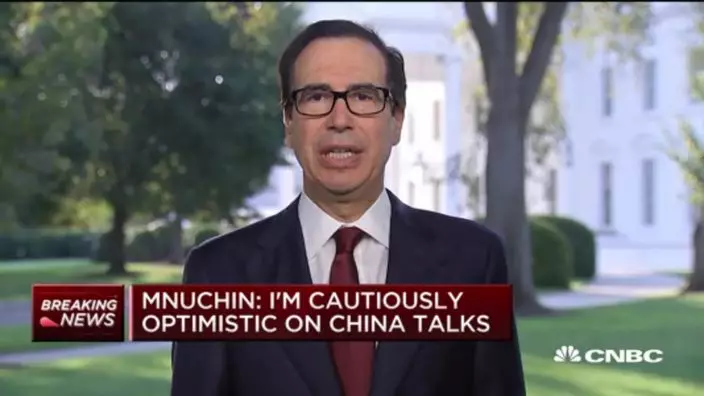 美財長姆努欽早前接受CNBC訪問,對中美貿易談判樂觀。