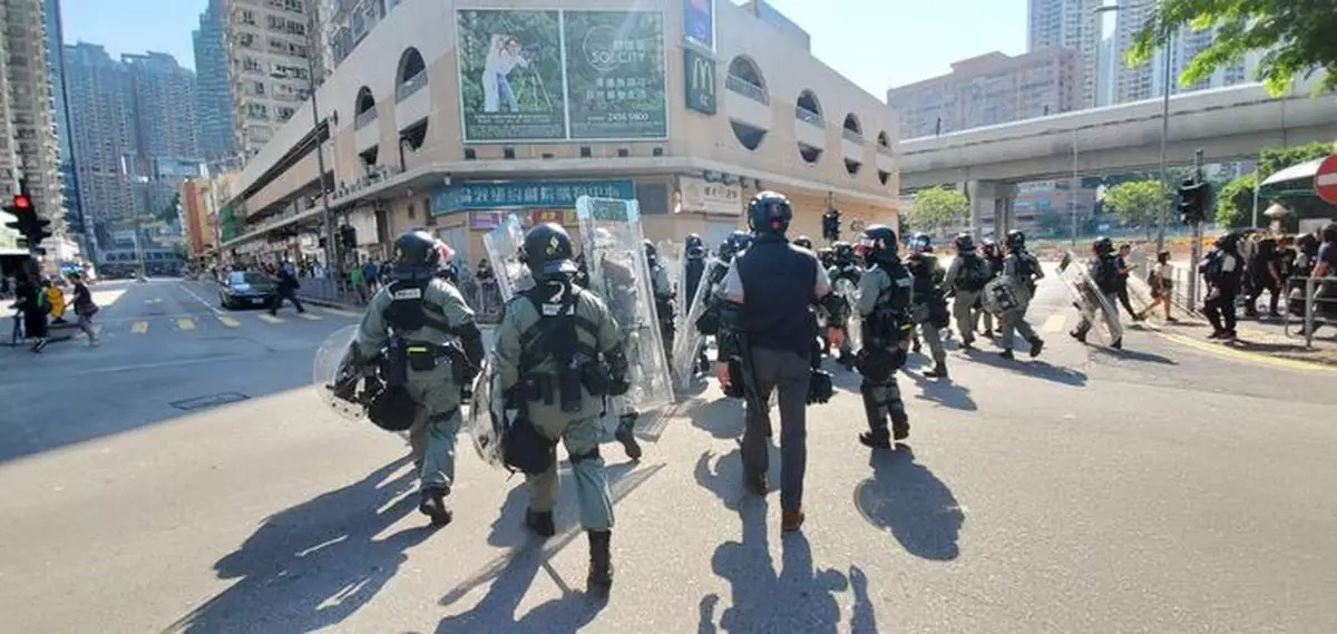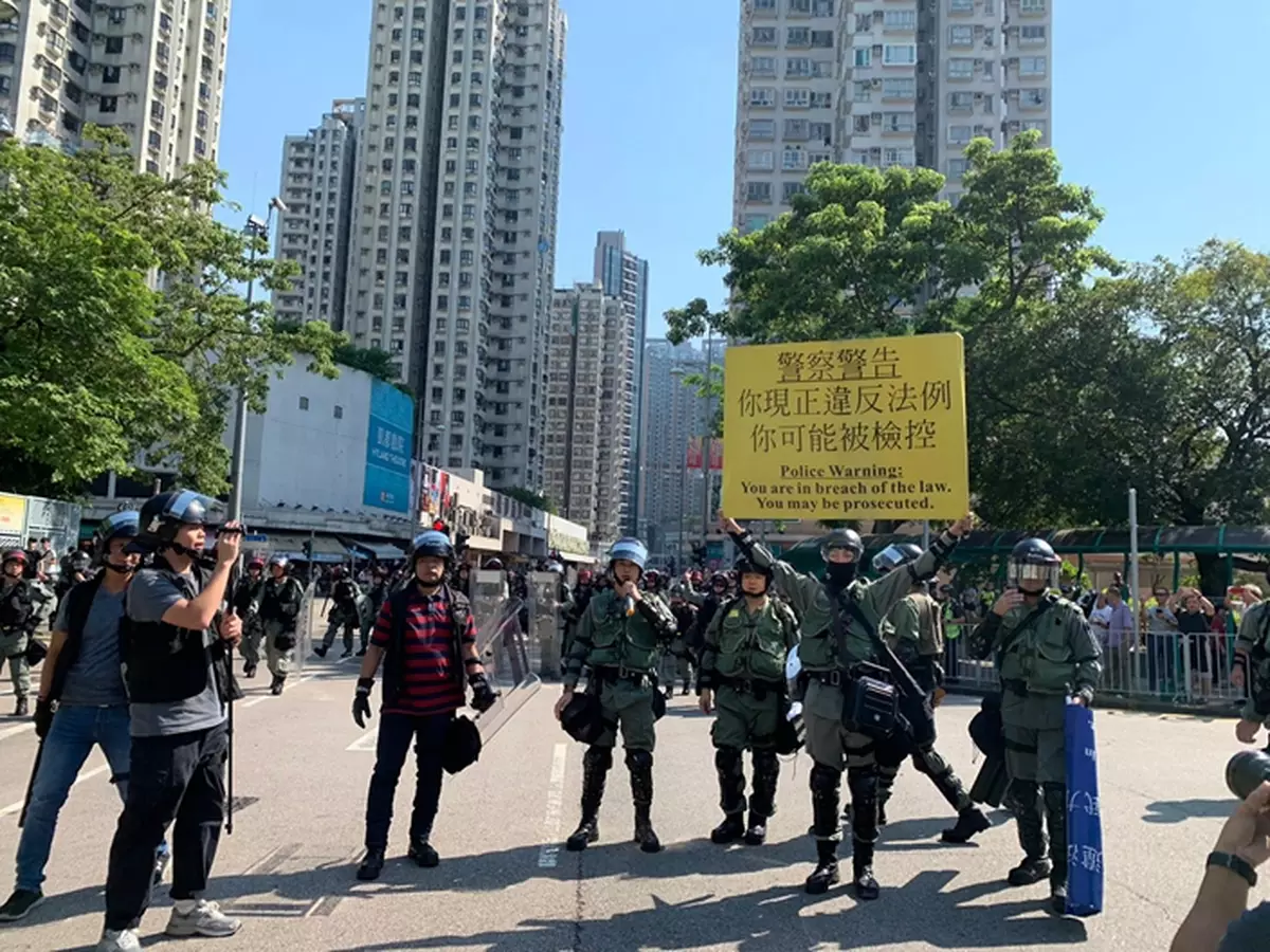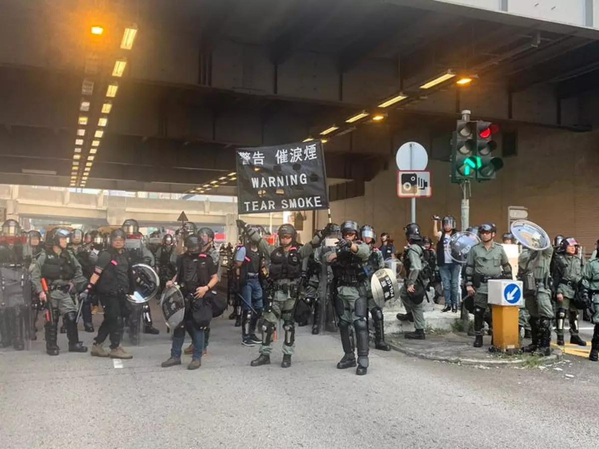 而在屯門西鐵站外一批人聚集,有防暴警察舉起藍旗,警告集會或遊行屬違法。下午約3時35分,西鐵站外防暴警察展示黑旗,警告施放催淚煙。