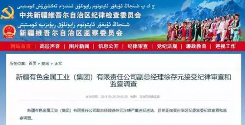 新疆有色金屬工業(集團)有限責任公司副總經理徐存元涉嫌嚴重違紀違法,目前正接受自治區紀委監委紀律審查和監察調查。