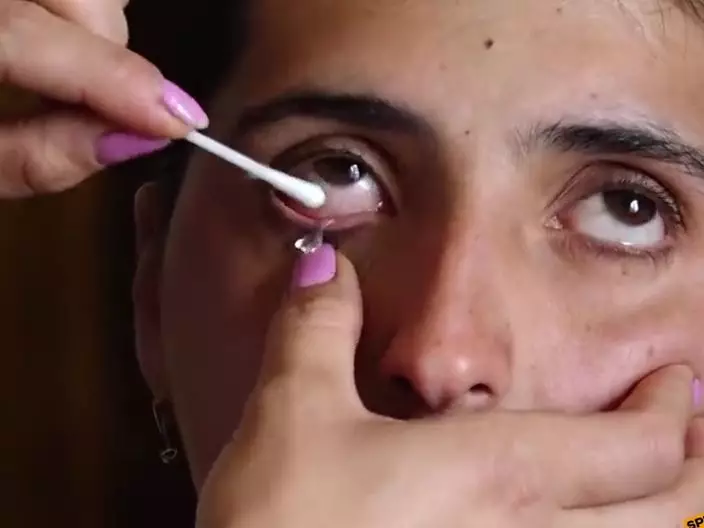 據報,該名來自亞美尼亞的22歲女子薩傑妮科(Satenik Karazian),在幾個月前突然出現眼睛不適的症狀,原本不以為意,沒想到突然之間眼睛裡流出的不再是淚水而是一顆顆看起來像是水晶一樣的晶體,從影片資料中可以看到她眨了眨眼,朋友就可以用棉花棒輕輕的推出一個透明的物體。