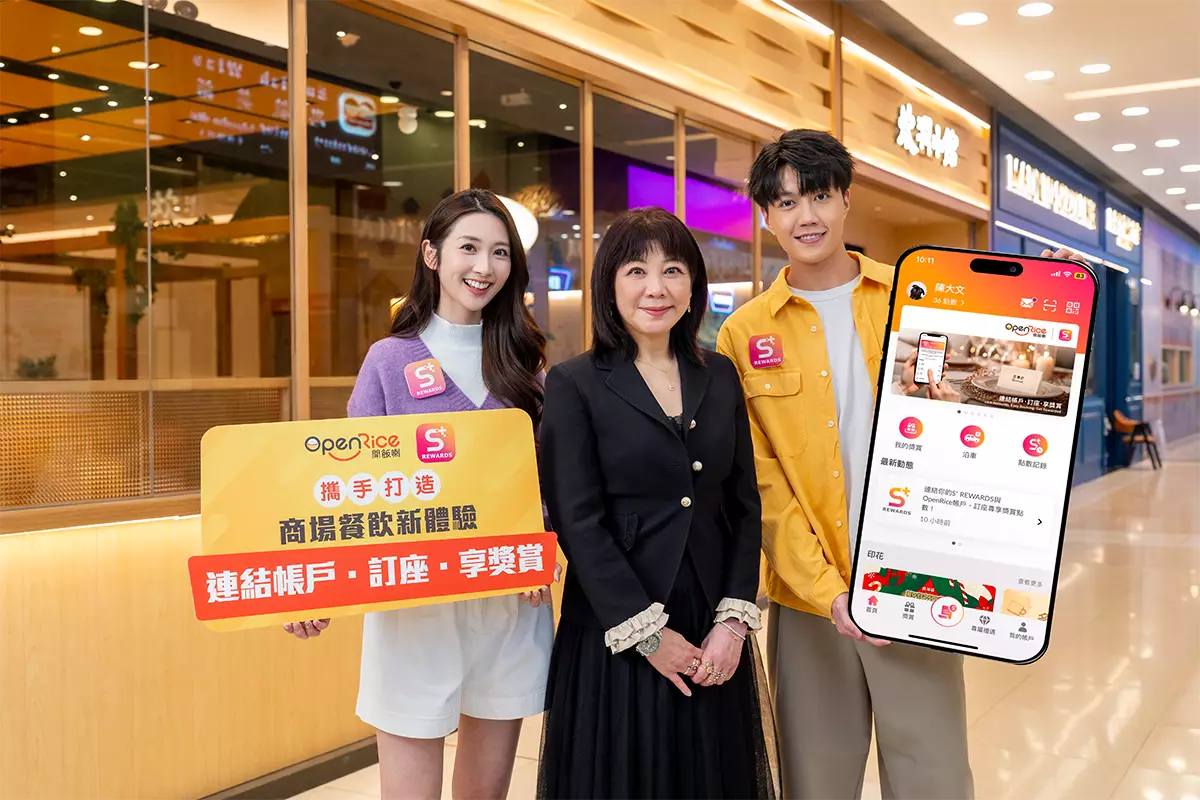 另外,由即日起,S⁺ REWARDS 會員只要與 OpenRice 帳戶首次連結,即可獲贈3獎賞點數;其後透過 OpenRice 平台於信和集團商場、酒店及其他精選地點的指定餐廳訂座,並完成用餐,每次可再額外賺取2獎賞點數。獎賞機制希望鼓勵 OpenRice 會員於信和商場用餐,並將餐飲客群延伸至商場購物消費,促進跨類別消費循環,實現商戶與顧客的雙贏局面。