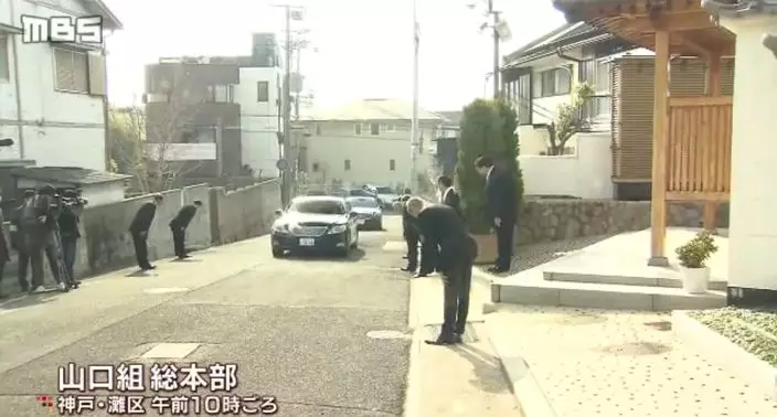 山口組核心成員陸續抵達神戶總部(圖片來源:MBS)