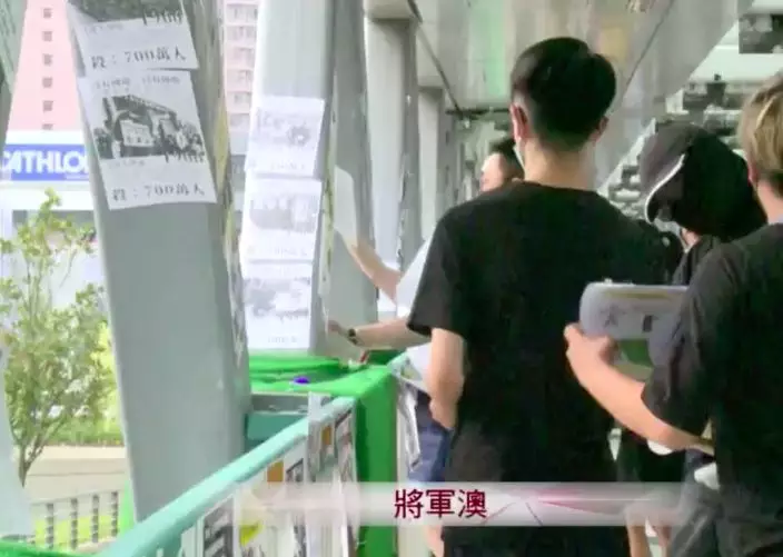 一批人在將軍澳Popcorn商場內貼文宣。港台截圖