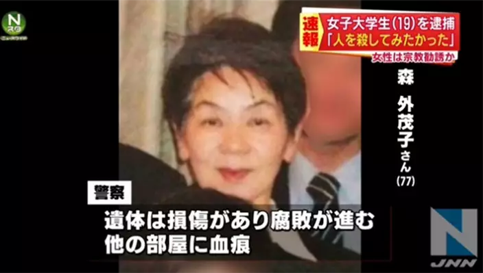據悉,森外茂子在去年12月初,因傳教認識涉案大內萬里亞,她看似對宗教感興趣,經常請教宗教問題。12月7日上午,森外茂子陪同大內萬里亞參加名古屋一個宗教聚會,之後共晉午餐,兩人之後一同前往女生住所。