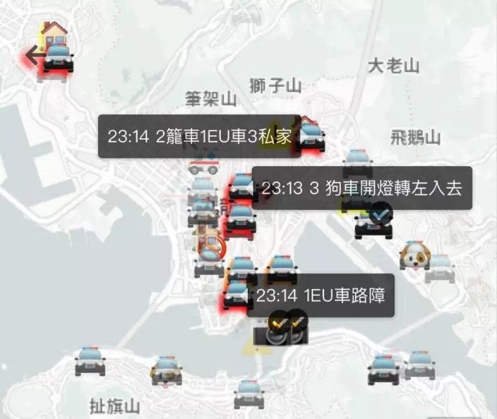 在HKmap 即時地圖App上展示警隊的行蹤,並形容警察為狗