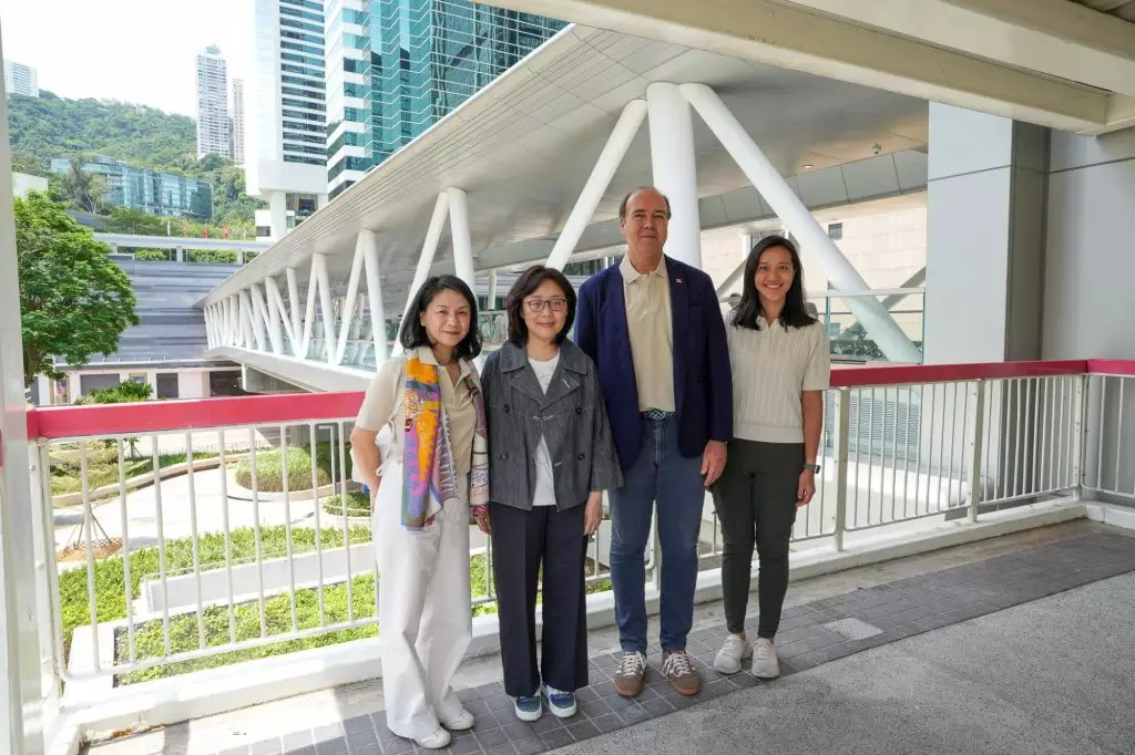 (左起)太古地產發展及估價董事馬淑貞、發展局局長甯漢豪、太古地產行政總裁彭國邦及發展局海濱事務專員李愷崙一同試行新落成的的金鐘二橋。甯漢豪網誌圖片
