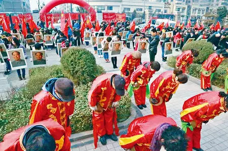 山西大學組織組織120面旗幟方陣遊行,學生高喊「誓死效忠毛澤東」要學生不忘歷史使命同社會責任。