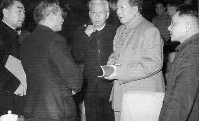 1962年初,毛澤東、劉少奇、周恩來、陳雲、鄧小平、彭真在北京舉行的中共擴大的中央工作會議(即七千人大會)上。