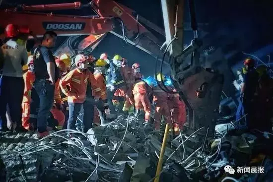 救援現場燈火通明,能夠聽到挖掘機和各類工程機械的轟鳴聲,距離現場幾百米的312國道成為了市民的眺望點。