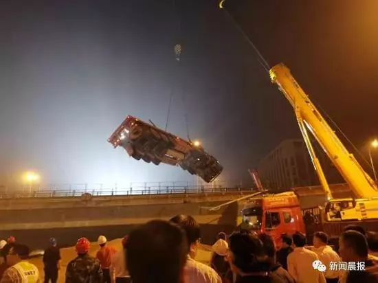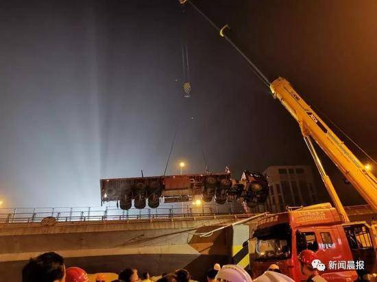 隨後,無錫交通廣播台播報消息:312國道上海方向位於錫港路上方的高架橋發生側翻。