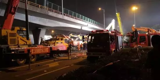 如何對白色轎車進行救援,是現場始終在爭論的一個點。受制於現場上方的高壓電線,調過來的吊車吊臂只能展開到負荷500噸的程度,這意味著原本先吊起橋面,再拖出受害車輛的方案無法實施。