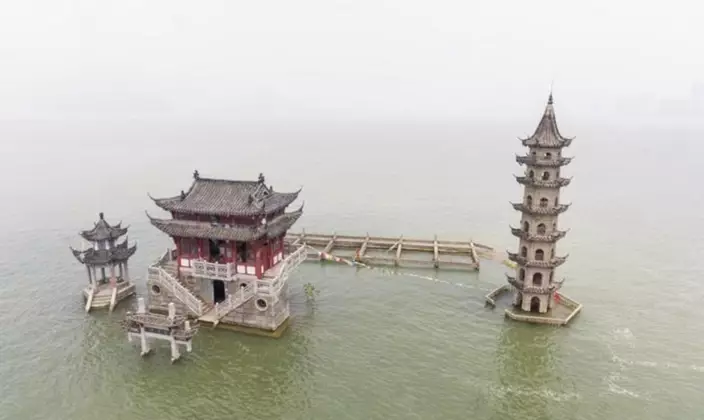 落星墩長期泡在湖水中,建築至今仍未腐壞。