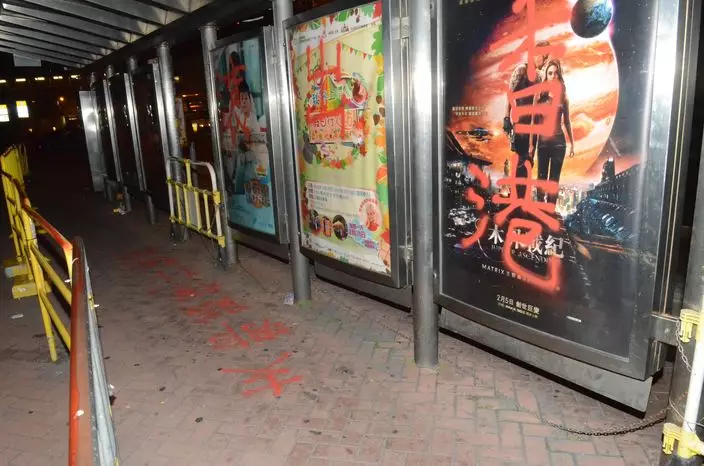昨凌晨四時許,警員巡經該巴士總站,發現七處地點如巴士站牌、電箱、廣告牌,圍牆、飲品機及行人路,都遭人以紅色和黃色漆油噴上:「滾出香港」、「支那蝗蟲」、「光復屯門」及「賣國賊」等侮辱性字句。