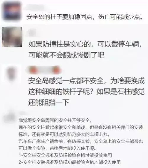 「必須高度關注安全島不安全的問題。」市政協委員蔣雷表示,今年以來,車輛失控撞上安全島的事故多次發生,說明這不是個例,應該引起交通管理部門的高度重視。當前,首要的是提升安全島的安全防護水平。
