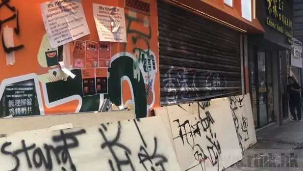 下午2時許,有示威人士在彌敦道破壞已關閉的「優品360」商店閘門,將店內部分的貨品搬出,閘門外的地上有零食及1個貨架,其後示威者到對面馬路的食店「吉野家」,拆下外圍木板及損壞店內的電箱,食店内充滿煙霧及地上留下白色粉末,閘外有滅火筒,懷疑有示威者用滅火筒向內噴灑,其後離開。