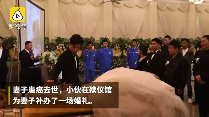 陰陽相隔,亦無阻他兌現承諾。遼寧大連一名女子5年前罹患乳腺癌,抗癌路上丈夫一直陪伴在側,二人亦已辦好結婚手續,打算待康復後補辦婚禮。不過她日前最終不敵癌魔離世,丈夫為圓太太心願,守靈7天後再在殯儀館舉辦婚禮,在場人士無不被他的深情打動。