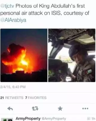 約旦機師卡薩斯貝被IS用火燒死後,約旦揚言會作出「地動山搖」的報復。據美國新聞網站the Daily Caller報道,當地時間週四約旦國王阿卜杜拉可能會親自駕駛戰機,參與空襲IS據點的行動。