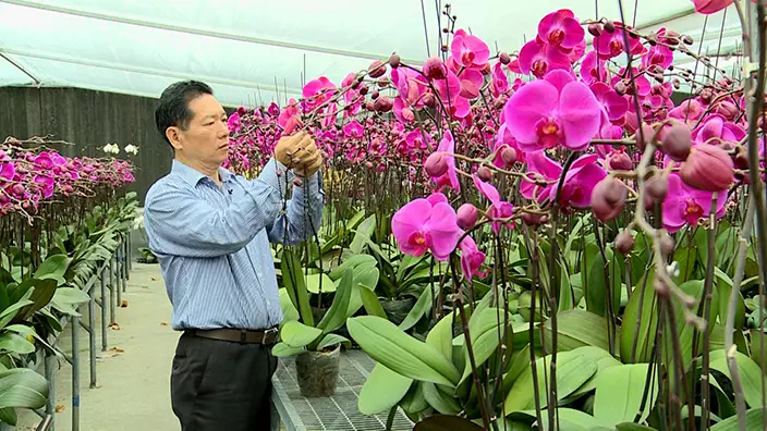 記者日前去到錦上路的蘭花銷售場找「蘭花大王」楊小龍請教心得,年近歲晚花場的員工即使平日都忙個不停,不少客人前來「幫襯」,剛好遇上前一哥李明逵,他笑指貪這裡款式多,年年也來光顧,今年同樣只做物流,挑選的重任交到了太太手上,今年夫婦倆便選了「千葉公主」等花款。