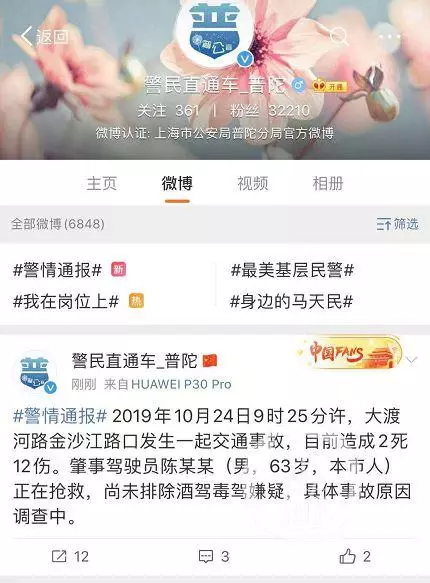 ▲上海市公安局普陀分局官方微博發佈的警情通報。微博截圖