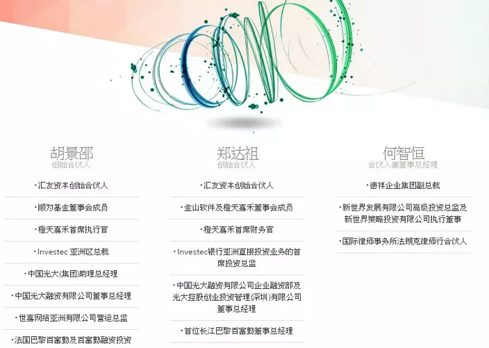 至於胡景邵,應該是以匯友資本的名義入標,他是匯友的創始合伙人, 之前曾在2009至2011年期間曾擔任橙天嘉禾的行政總裁。 知情人士叫Ariel睇睇匯友的網頁, 睇吓匯友三個合伙人的介紹,發覺真係有啲料到。 匯友網頁只介紹三個合伙人,創始合伙人胡景邵、 創始合伙人鄭達祖、合伙人兼董事總經理何智恒。 胡景邵和鄭達祖都做過百富勤, 胡景邵曾做過法國巴黎百富勤和百富勤融資, 鄭達祖曾是首位長江巴黎百富勤董事總經理。