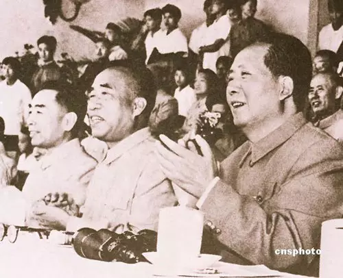 毛澤東、朱德、周恩來在第一屆全運會主席台。 中新社資料圖