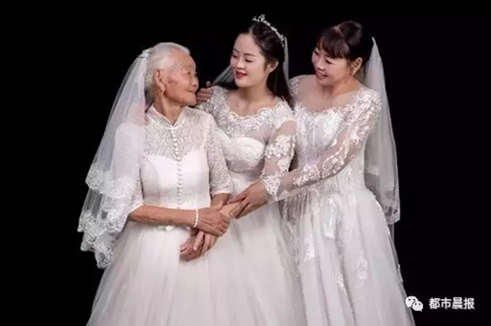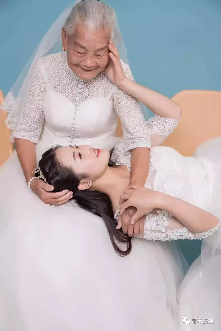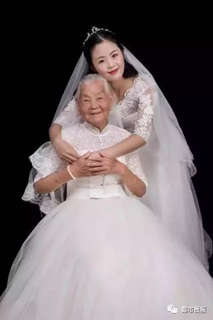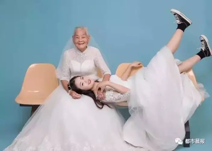 江蘇一名24歲女生日前在網上分享一輯特別的婚紗照,因為她的拍攝對象是94歲的外婆。女生解釋,外婆年紀漸大,這2年常常無意間「催婚」,表示希望能親眼看到孫女穿上婚紗的模樣。因此她早前趁著生日帶同外婆到影樓拍婚紗照,為二人留下美好回憶。