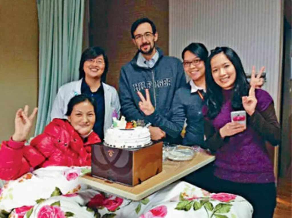 昨天是易小玲36歲生日,亦是她三年來,首個可除下口罩度過的生日。下午數名醫護人員捧着易小玲主診醫生魏福全的蛋糕,進入病房,為易小玲舉行小型生日會。