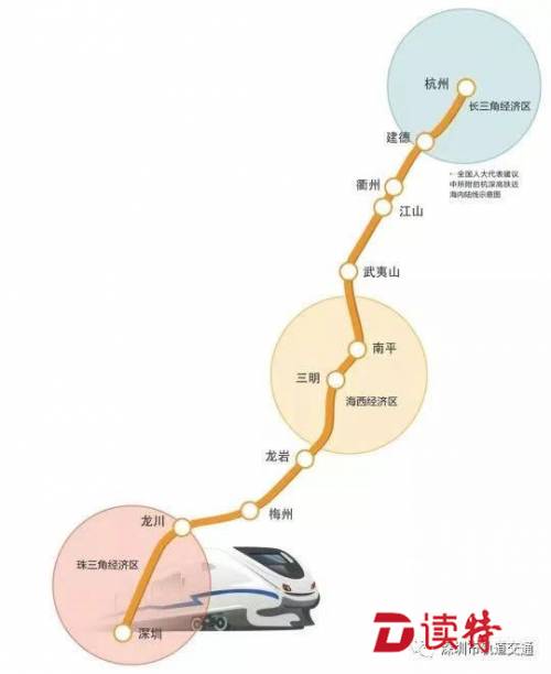 深圳市軌道辦相關負責人表示,杭深高鐵近海內路線除了衢州至武夷山尚未規劃,其他的區段均已經規劃或者建設高鐵,實現全線貫通難度較小,會加快近期實施。杭深高鐵近海內陸線一方面構築珠三角與長三角快速連接的第二條鐵路大通道,串連珠三角、海西經濟區、長三角三大片區,加深了深圳市與沿海內陸城市的交通互聯互通,也對深圳鐵路納入國家鐵路網具有重要意義,另一方面也可以緩解現在廈深鐵路一票難求的現狀,同時對於深圳鐵路納入國家鐵路網具有重要意義。