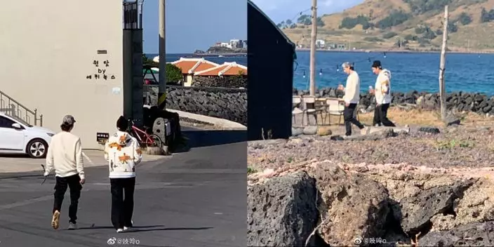 新浪網友拍下兩人在濟州島上共同出行的背影,猜測是為talk騷進行拍攝(網上圖片)