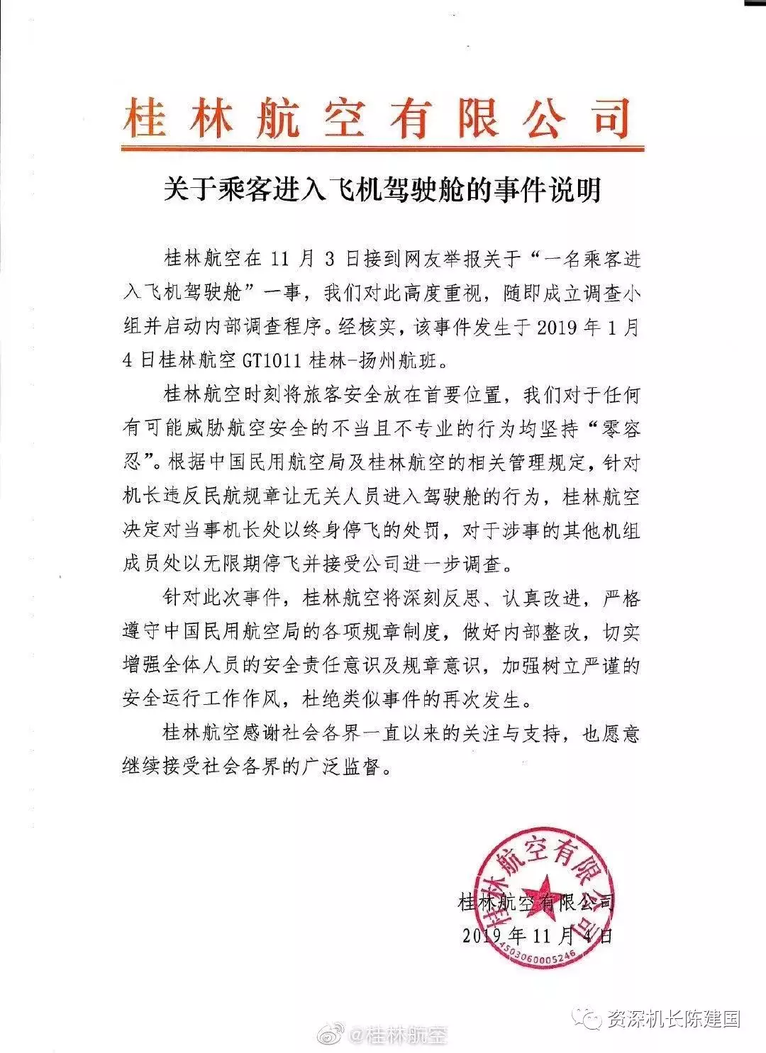 事發的桂林航空公司也出面承認了該事件,而事件發生在整整11個月之前。