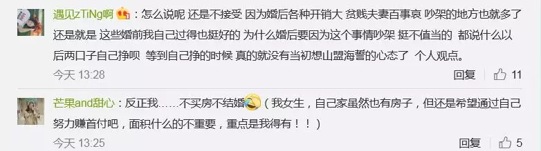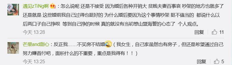 @北城相擁丶南城逆流:作為男方,至少我的觀念里,該有的這些有了,我才會談結婚。哪怕房子是只交了首付,至少該有的有了,剩下的慢慢再補,不求別的,只求給自己,也給對方的家庭一個安心。
