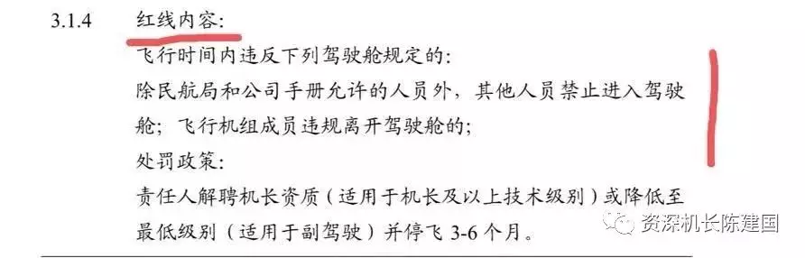 涉事的航空集團關於機組違反該條要求是被列為所謂的紅線。