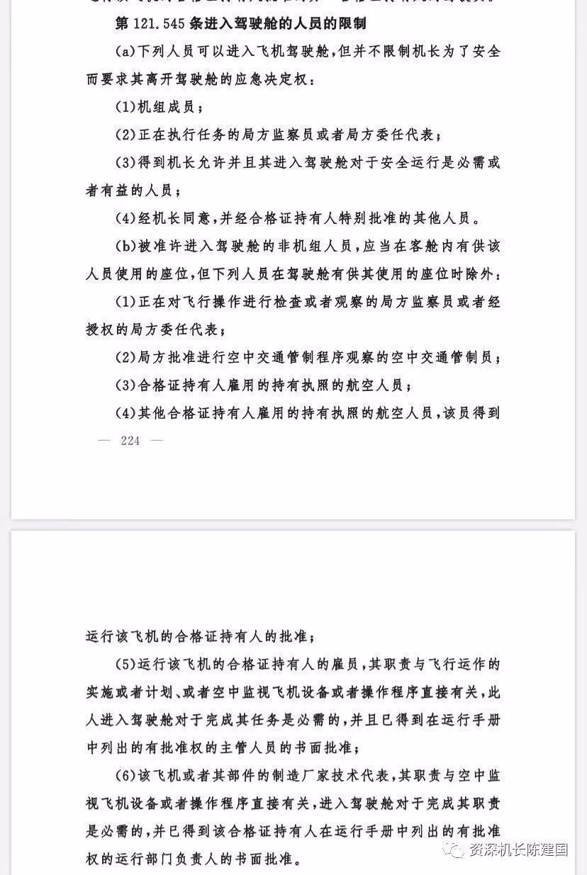 該條規定,在機組違反其他人員進入駕駛艙的,責任人解聘機長資格或降低至最低級別,並停飛3-6個月。