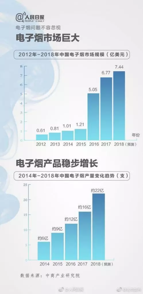 「不能把電子煙簡單地看成一支煙,它已和流行文化結合在一起。」中國人民大學新聞學院副教授張迪表示,電子煙文化傳播範圍廣、路徑多,如果不加控制,預計使用電子煙的青少年人數還會大量增長。