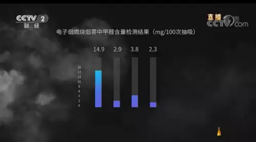 子煙的危害”,稱其通過市場隨機購買的8種電子煙煙液送往實驗室檢驗,實驗室工作人員發現部分尼古丁含量超標。央視主持人稱通過科學實驗證明,電子煙含有不少有害物質,危害一點兒不比香煙來得少。由此認為,電子煙行業缺乏有效監管。
