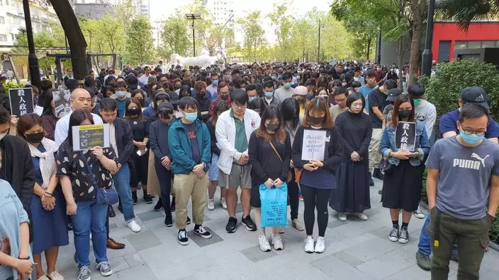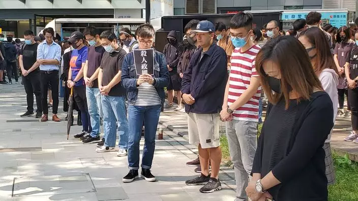 觀塘駿業街逾百人在場默哀,悼念墮樓科大生。