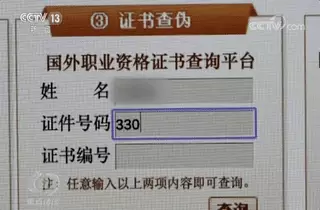 記者登錄了國家人社部設立的外國職業資格證書查詢平台,在國際證書查詢一欄中,輸入證書編號後,根本查詢不到任何結果。
