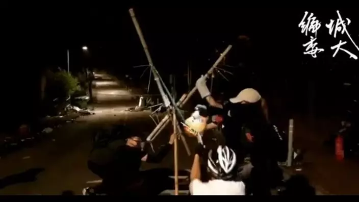 中大學生練習用投石機掟汽油彈。