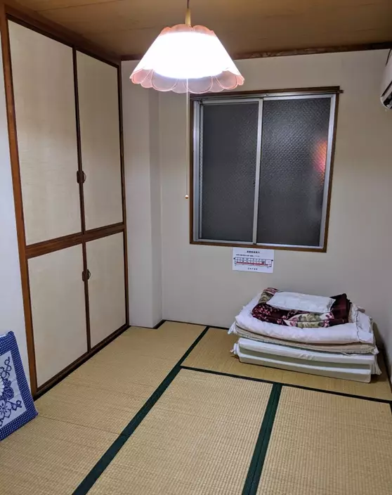 位處福岡市區的「朝日旅館」,是一間正常的普通旅館,福岡官方城市指南網站的介紹也寫著「廣受旅客喜愛,能安心住宿」。距離博多車站約20分鐘路程,最繁華的中洲、天神一帶在步行可到的範圍,整潔的榻榻米和式房間內設備也很齊全,睡墊、棉被、枕頭、椅墊、矮桌、熱水瓶和電視都有,冷氣則須另外收費,100日圓可享用2小時。