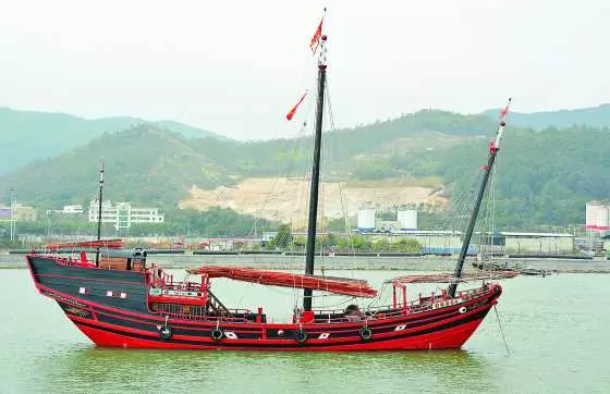 仿古船去年六月建成下水,按照原船的一比一比例設計全實木構成,船身長30.8米,寬10米,高3.8米,其中主桅杆的高度超過20米。由陽江當地資深造船工人按照古典“福船”技藝手工建造,為木質單甲板、單底、單舵,採用二層組合橫骨架結構,龐大的仿古船體沒有使用一顆鐵釘。