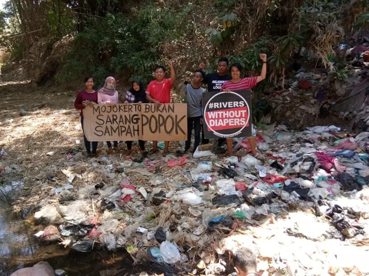 印尼民眾舉起寫有類似「還我沒有尿片的乾淨河水」字眼的牌子(網上圖片)