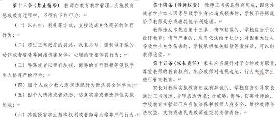 徵求意見稿中的「禁止情形」“教師權責”“家長責任”