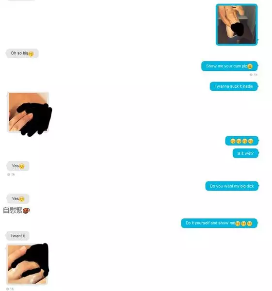 港女似乎不虞有詐,對「Denny」大為傾慕,多番想相約對方外出飲酒見面。「Denny」則與港女由日常生活事談起,多番要求對方傳性感相,港女亦滿足「Denny」要求,發送的照片越來越性感,最後更扯上性話題,港女言論挑逗,主動相約對方發生關係,自稱在床上表現狂野,更發送自己的自慰照,「Denny」則以自己的「淫照」作回報。
