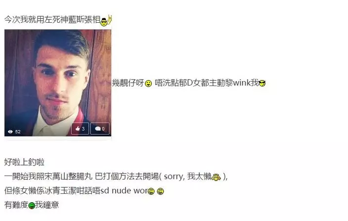 港男經常批評港女崇尚洋漢,有網友竟以英國球星的照片作餌,成功吸引一個港女搭訕,更以網上的猛男照片騙得對方傳來裸照,甚至自慰不雅照片,再將對話及照片放上論壇炫耀,迅即在網上瘋傳。