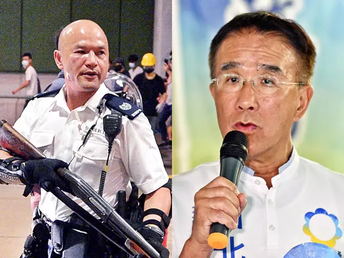 田北辰同光頭警長隔空「駁火」。