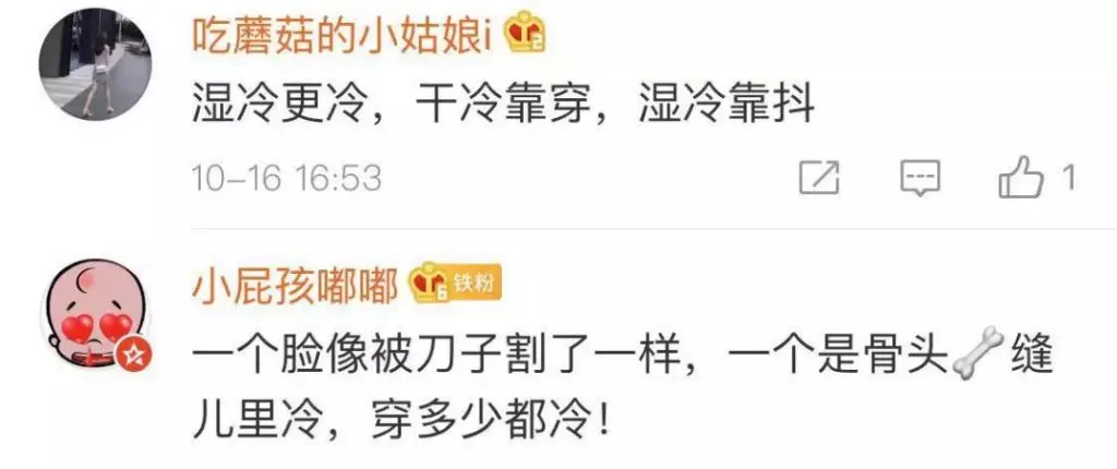 還有一些網友屬於「科普派」,他們認為,北方的氣溫更低,但同一溫度下,濕冷感覺更冷。