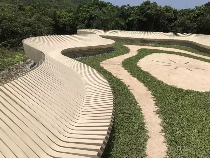 佢表示,新建觀星設施是一座由玻璃纖維強化樹脂板組成的環形座椅,強化樹脂板堅固耐用,適合在露天位置使用;座椅更按四周樹線形態建造,流線形的設計,融入大自然當中,十分美觀。建築署建築師盧宜璋說,項目最大的特色是環形座椅,做到360度觀星角度,即是無論坐在哪個位置,都能看到星空。座椅形態則根據人體工學設計,讓人以最舒適的135度坐姿仰望星空,較躺在地上觀星更為舒適。