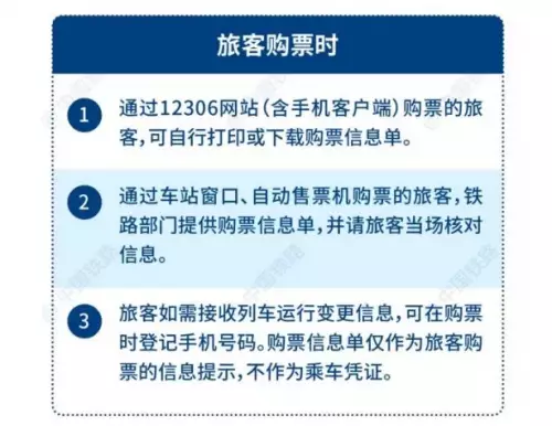 我國現有的鐵路紙質車票,為紅色條碼票和藍色磁介質車票兩種,均採用實名制,旅客需憑車票乘車。鐵路客運服務由紙質客票向電子客票方向優化和重構,實現了旅客購票、進站、候車、乘車、出站、換乘等全過程信息化服務。