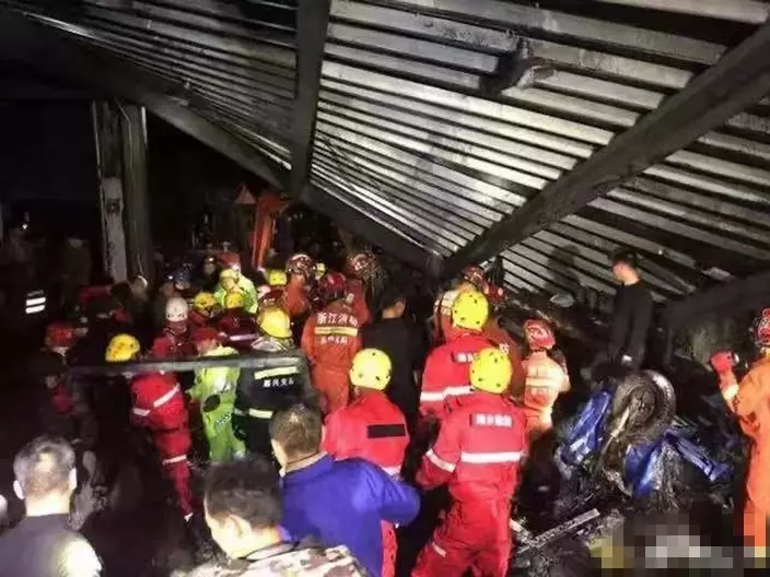 據報,海寧市許村鎮盪灣工業園區內的海寧市龍洲印染,昨天傍晚約5點多發生污水罐爆炸,造成罐體倒塌,該棟建築是一幢5層鋼筋混凝土廠房,廠房外的一個直徑約3米、高度約為15米的污水罐,在爆炸後致整棟建築倒塌,壓倒相鄰兩個廠房,多人受困。