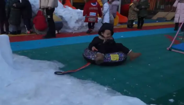 從影片中可見,這間幼兒園造了一條冰雪滑梯,孩子們玩得不亦樂乎。園長于女士表示,因為瀋陽近年來雪量不多,想讓孩子們感受冬天的快樂,園方花了4萬元(人民幣)去哈爾濱買來造雪機,經過一日的造雪和搭建,完成了這個「冰雪大世界」。